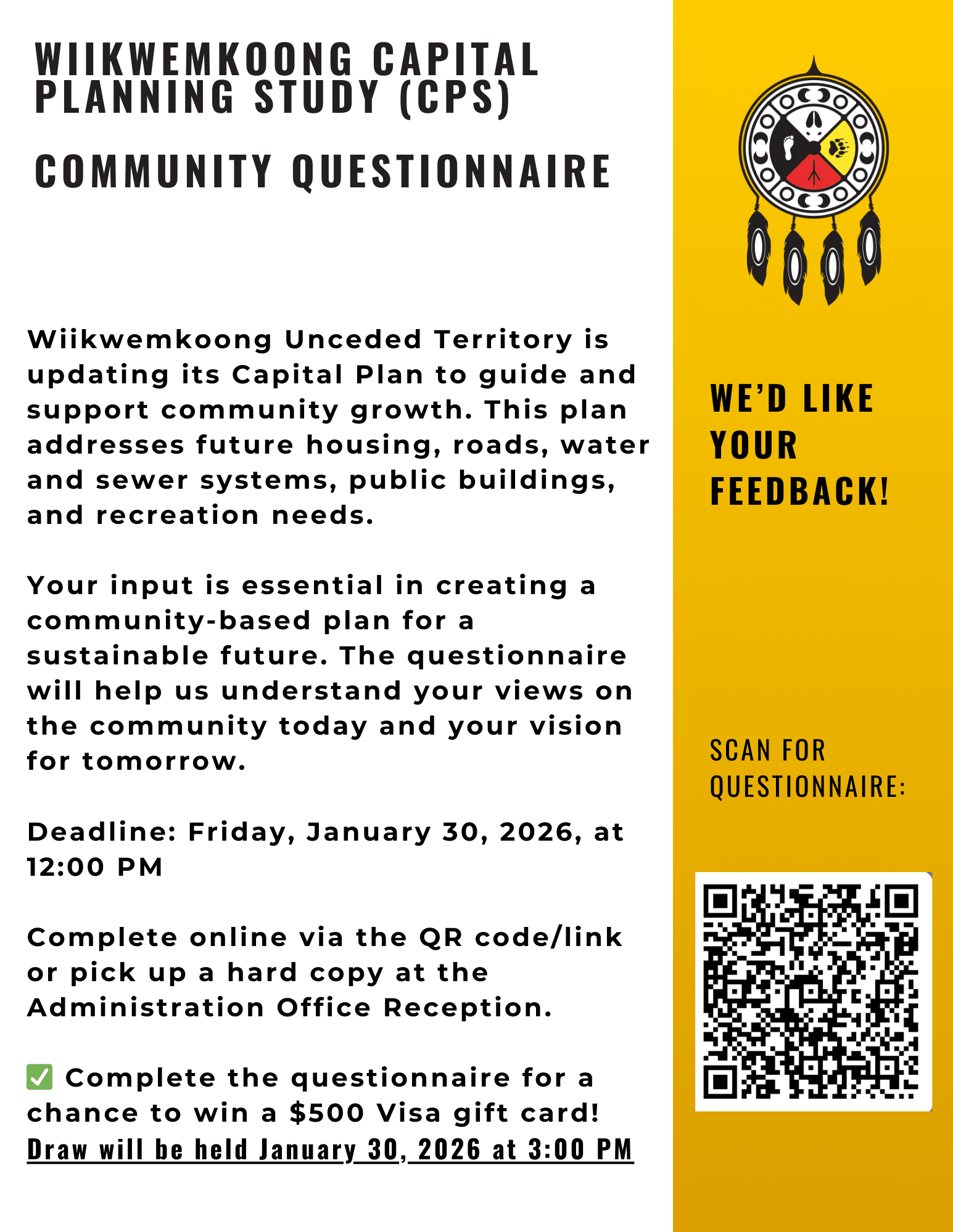 Wiikwemkoong Capital Planning Study (CPS) 2026-01-06T16:37:15-04:00January 6th, 2026|News| Related Posts Notice from DLNR/Oil and Gas Program February 27th, 2026 | 0 Comments Notice of Road Closure Due to Water Service Line February 26th, 2026 | 0 Comments CALL FOR NEW MEMBER TRUSTEES February 19th, 2026 | 0 Comments Info Session for the Safety Naaknigewin February 18th, 2026 | 0 Comments 2ND PHASE CLOSURES February 17th, 2026 | 0 Comments